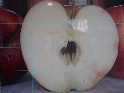 I took several photos of my apple, to have for reference. I cropped the photo and added a grid, to help me transfer it to the larger canvas. I often turn the photo and canvas upside down, to make sure I am drawing things correctly. I’ve heard it said, that turning things upside down, uses a different part of your brain. I definitely think it’s easier to dissect something upside down. You see the lines and shapes instead of (in this case) an apple. I think it works especially well with faces and bodies.