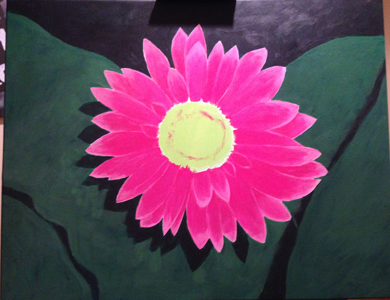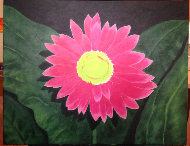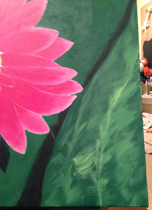 I’m trying to figure out what section of the painting to attack next. Finish the leaves? The center of the flower?