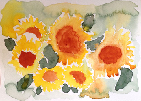 The second outtake, looked like a bunch of sunflowers, so I added ink to make it look more finished. Lately I’ve been having fun playing with ink. In the past I shied away – thinking the outline had to be precise and perfect. Now I’m just scratching away, the way I would with a pencil. Is my style coming out?!