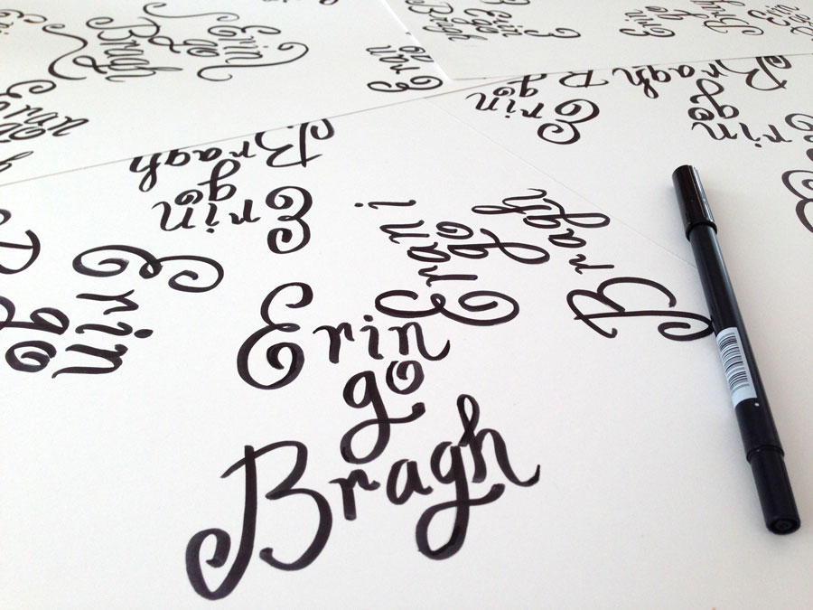 Last week I participated in an online hand-lettering workshop. Impatient person that I am, I quickly realized that this craft takes a lot of practice! Today I sat down to write a Gaelic phrase, “Erin Go Bragh,” which means, “Ireland Forever.” (It’s March, I can’t help but celebrate my Irish roots.)