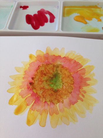 This is what I was thinking about when I painted this sunflower this morning. How the ugly stage was awfully ugly! And how each layer of watercolor I added made the painting better. Originally I planned to add ink to the flower when I was done painting. As I got closer to finishing, I liked it the way it was. My daughter agreed.