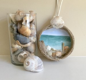 Group your treasures together to create beachy vignettes with shells, starfish, driftwood, beach glass, rocks, etc. Learn how to create a beach diorama like the one above here.