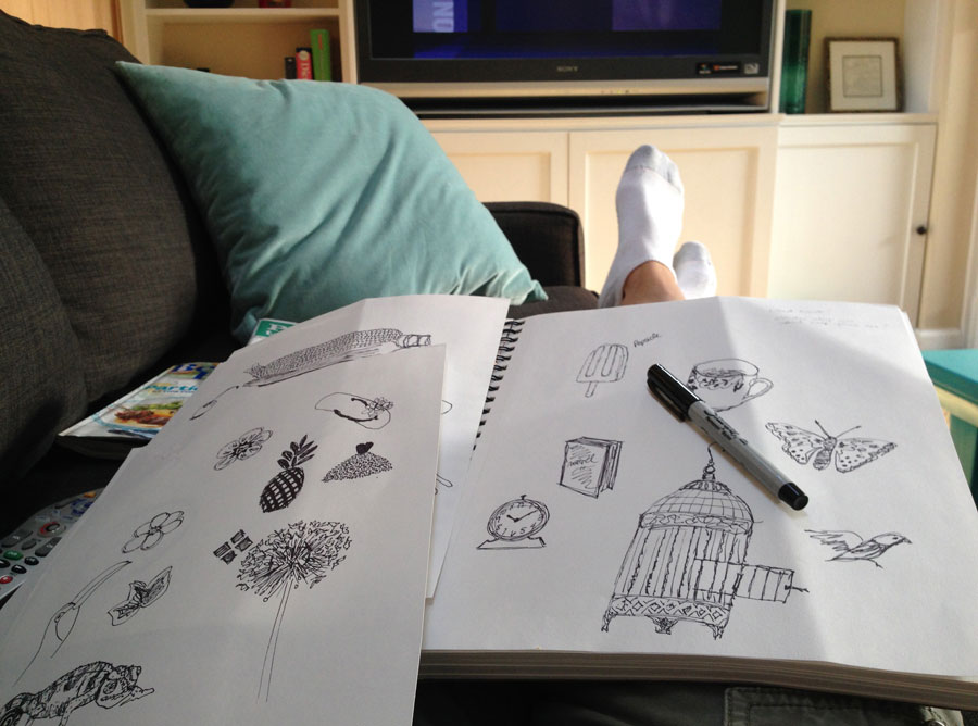 I’m ready! I got a fresh new sketchbook – my favorite kind – the Canson Multimedia. Last year as the end of InkTober drew near, I began adding watercolor to my ink sketches. I couldn’t help it! The Canson sketchbook pages are nice and thick, making them perfect for watercolor. And they are bright white too, which I love. I also have a pack of my favorite pens – the Uniball signo (bold 207). This pen is a gel pen and feels very smooth when drawing with it.