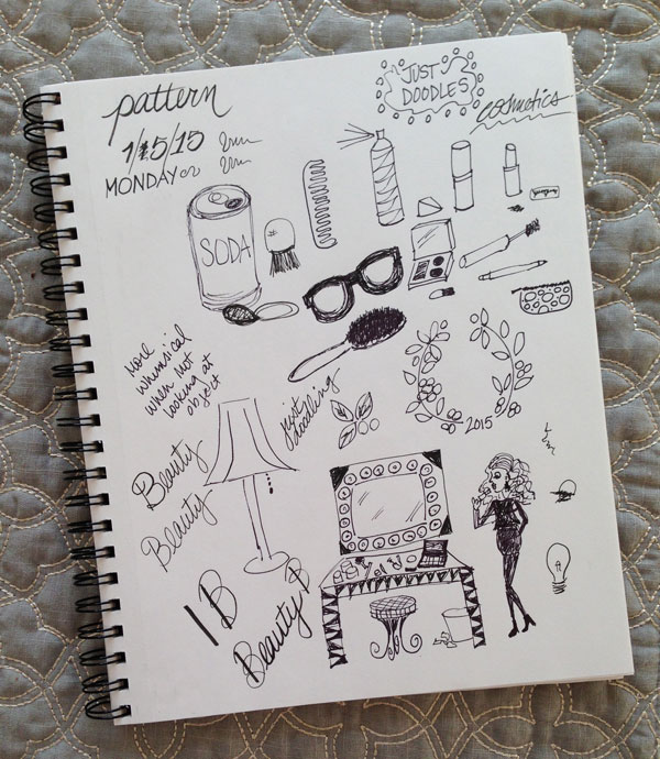 Patterns – While I was doodling the other day, I realized that some of these doodles could be made into a pattern. This pushed me to continue with a theme – cosmetics. So my pattern plan is to continue doodling and at a later date, I’ll look through my sketchbook to find things to use.