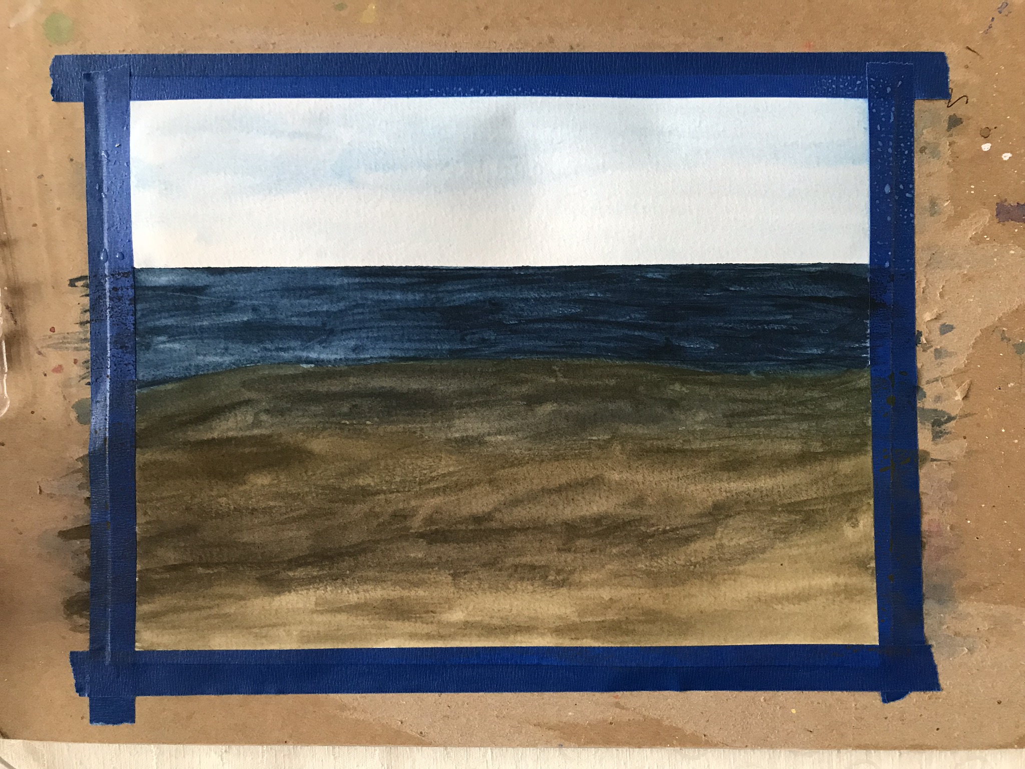 Always tape down your paper to a board using painter’s tape. I use the cardboard back of old art pads. The cardboard needs to be larger than your paper.I use a painter’s tape like this one. I prefer tape that is less than an inch wide. The reason for taping down your paper is that water and paint causes paper to buckle. Taping your paper to a board helps keep the paper flat.