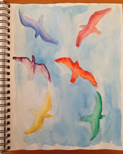 Once I got started I realized I missed watercolor! There is so much you can do! It is fun to wet sections of the page and let interesting things happen, let colors blend. Or add detail to a dry part of the paper, with a dry brush and paint that is directly from the tube. And in between these two techniques (wet on wet and dry on dry), are tons of other options! There was a time that I painted exclusively in watercolor. Here are a couple of my older paintings.