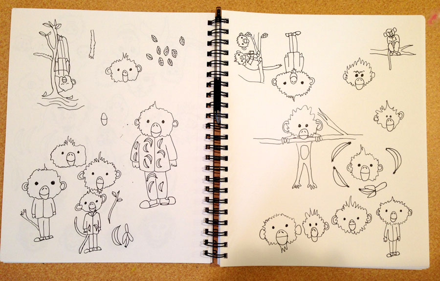 Recently I was flipping through my old sketchbooks and found watercolor pineapples, already arranged like a pattern. I grabbed my favorite black gel pen, added some black lines, scanned it, and played with the arrangement in Photoshop to create my repeat. I uploaded the repeat file to Spoonflower and am excitedly waiting for a swatch!