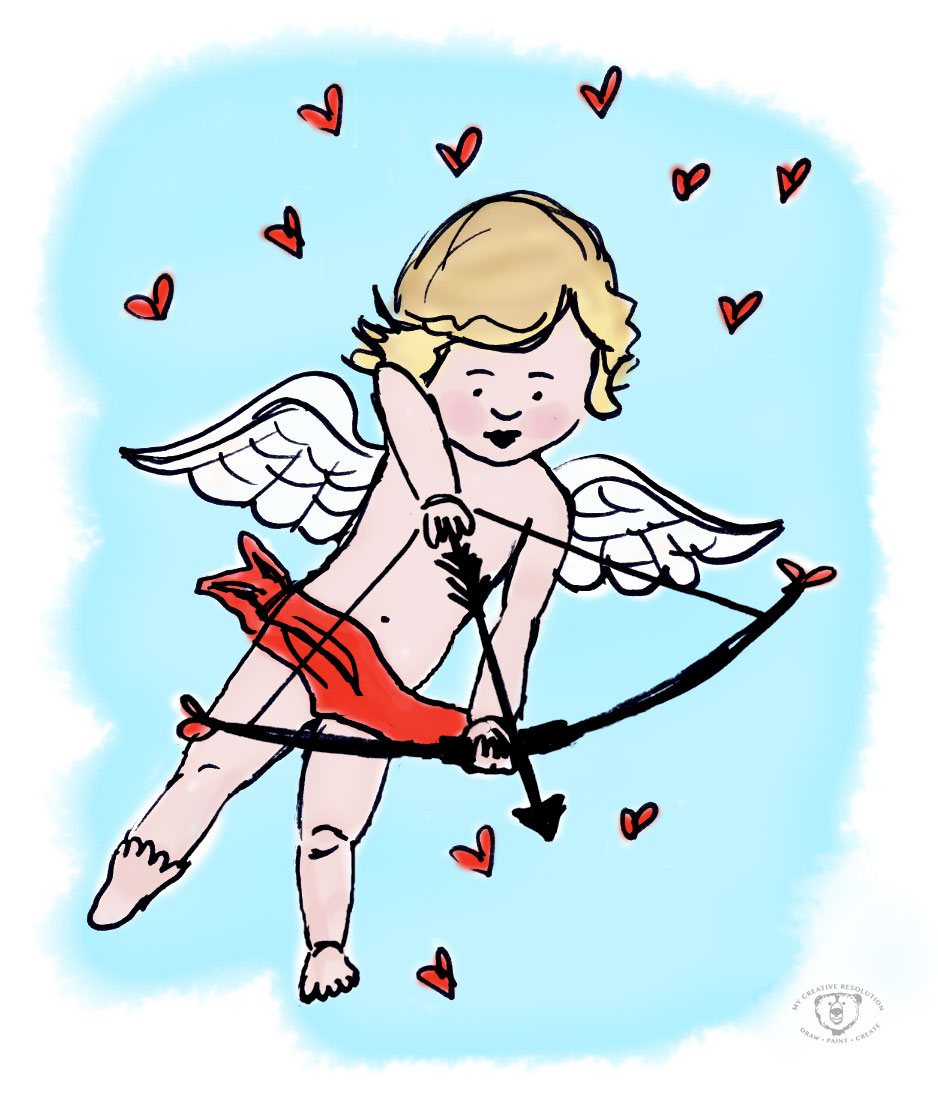 Cupid was a Sharpie doodle in my sketchbook that I scanned and painted in Photoshop. Follow me on Instagram to see my other Valentine’s Day inspired posts!
