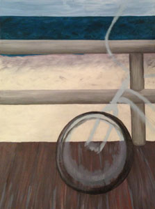 Now, I had to fix the tire, which would involve touching up the boardwalk, ugh. Most people probably start with the foreground and then add in the background. In the case of the boardwalk, I thought it would be easier to paint it first. I’d be interested in hearing how others approach their paintings!