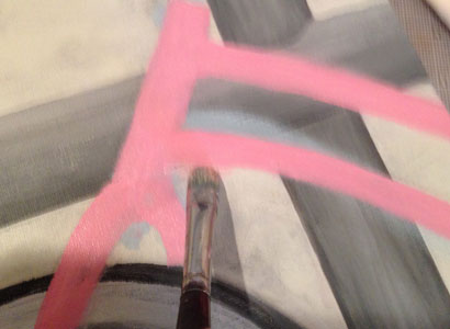 I was so happy, having so much time to paint, but after less than an hour, I needed a break! I was struggling with the shape and size of the tire. I needed to step away. An hour later, full and refreshed, I came back to the painting. I continued working on the tire, fixing the boardwalk as I went. I then added the bike frame.