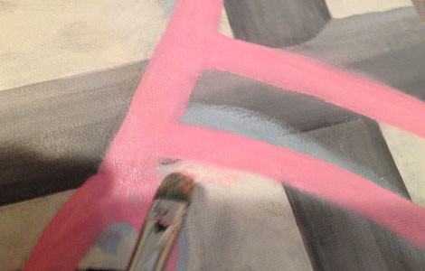 Following the grid closely, I added in the shape of the little girl. I plan on flipping the canvas over and refining her shape (with the same color). As I start to feel confident in her shape, I’ll start adding colors that will define her and pull her out of the sand. I’m developing this process on the fly – wish me luck!