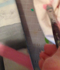 While working on the frame, I realized that freshly applied acrylic paint can be removed as easily as watercolor. With a damp brush I worked on the area I wanted to remove. When the paint transferred to the brush, I blotted the brush on a cloth and rinsed. I repeated this a few times and then used a paper towel to remove excess water.