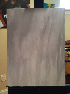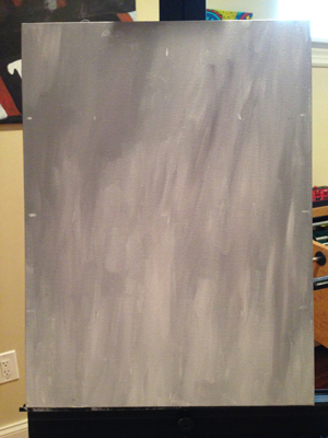 I may have bitten off more than I can chew, but I’m excited about this painting! I started by mixing a grey base color for my sand. I mixed thalo blue, cadmium red, and cad. yellow (as opposed to using black and white) because I wanted the sand to have color in it. I’ve struggled before with painting sand! I covered the entire canvas in this color, even where the ocean and little girl will be.