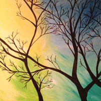 I finally got the hang of painting branches. I applied the blunt part of my square brush onto the canvas. I got a much more realistic limb, than when I was doing strokes with the brush.