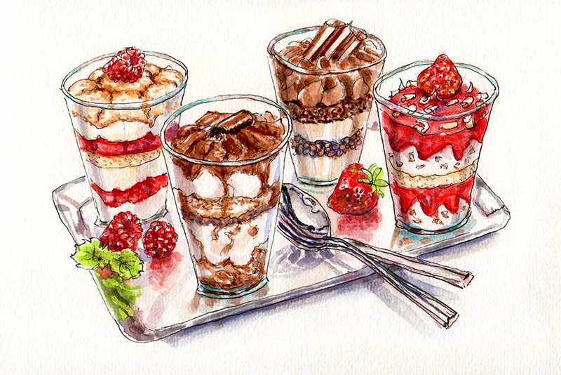 I love food illustrations so those end up being some of my favorites. I like my tray of desserts, which I titled My Favorite Dinner Food. And though I normally don’t enjoy drawing people, there was a selfie of just my eye that I rather liked. Usually my favorites are the more recent ones, as I see little things in them that show slight improvement.